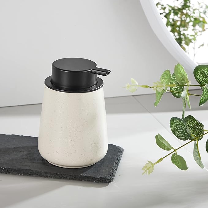 12Oz Foaming Soap Dispenser - Ceramic Foam Hand Soap Dispenser with Easy-to-Press Black Pump, Reusable and Refillable Lotion Dish Soap Dispensers for Bathroom & Kitchen, Speckled Matte Beige