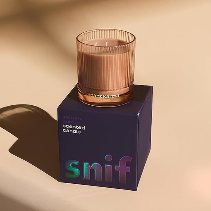 Instant Karma Luxury Scented Candle by Snif, Dark and Dreamy Scent, 50+ Hours, 100% Cotton Fiber Wicks, Soy Wax Blend, Non-Toxic, Vegan, 8.5 oz
