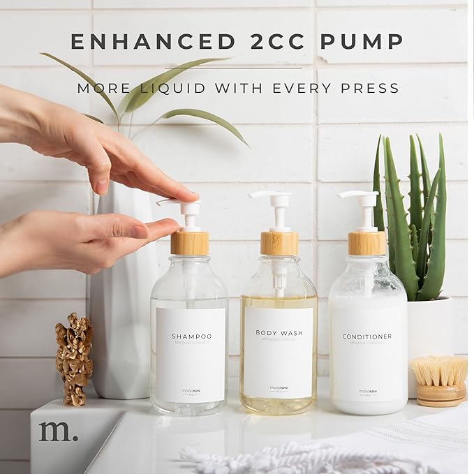 - Waste Reduction: Minimize waste with our lotion dispenser with pump bathroom containers. These sleek empty shampoo bottles reduce environmental impact while adding elegance to your space. A soap and lotion dispenser bathroom set that doesn’t compromise style!