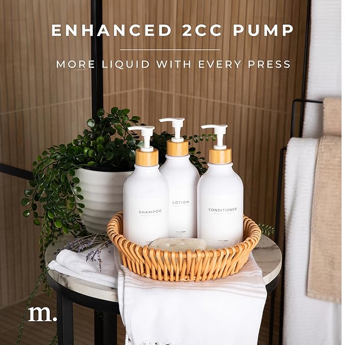- Waste Reduction: Minimize waste with our lotion dispenser with pump bathroom containers. These sleek empty shampoo bottles reduce environmental impact while adding elegance to your space. A soap and lotion dispenser bathroom set that doesn’t compromise style!