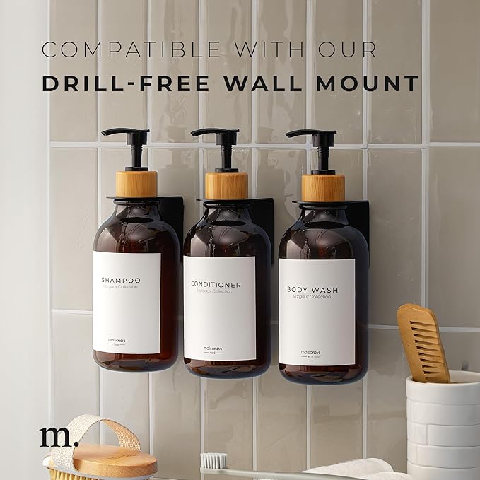 - Quality Materials: US designed & crafted to ISO14001 standards, this shampoo dispenser for shower works as a hassle-free liquid soap dispenser with its soap dispenser pump. Modern Decor shower bottles refillable with labels built for daily use.