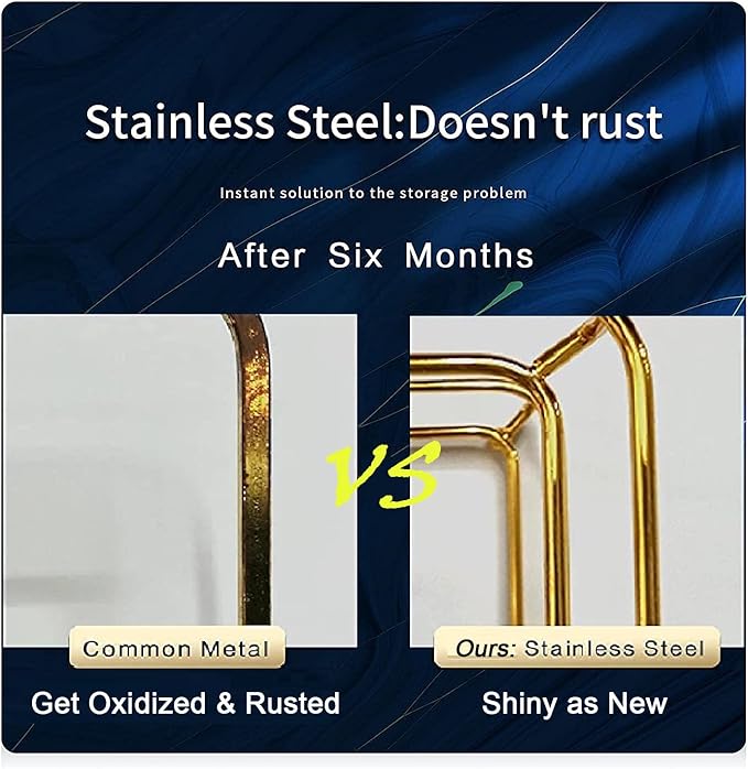 - EASY TO CLEAN: With a sturdy stainless steel frame that can prevent corrosion in wet places and removable ceramic trays with a luxurious marble pattern, this dresser top stand is both functional and easy to clean.