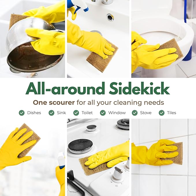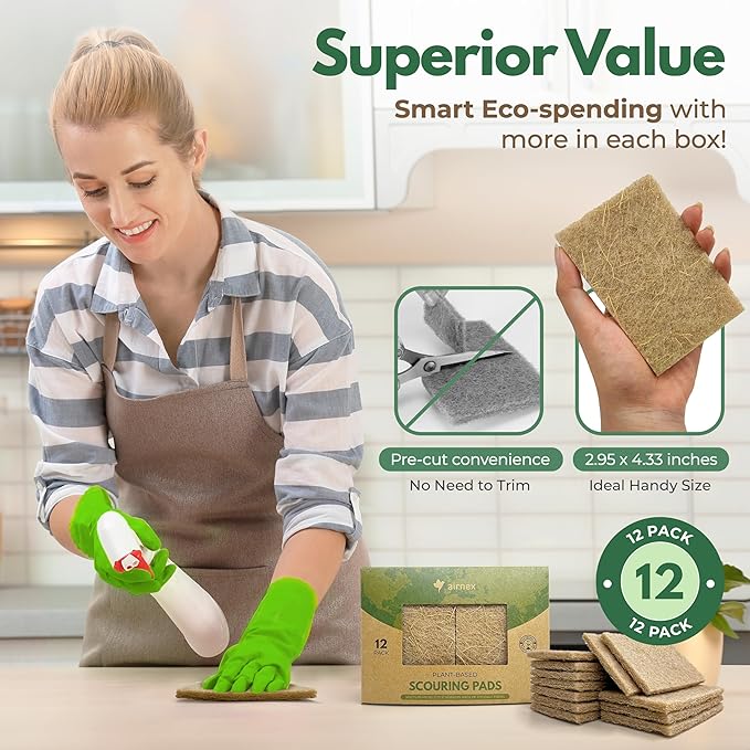 - NATURAL SCRUBBER FOR DISHES - Airnex's heavy duty dish scrubber pads are made with coconut fibers binded together with recycled fibers for a mix of great cleaning performance and care for the environment. These kitchen scrub pads make it easier than ever to go green in the kitchen!