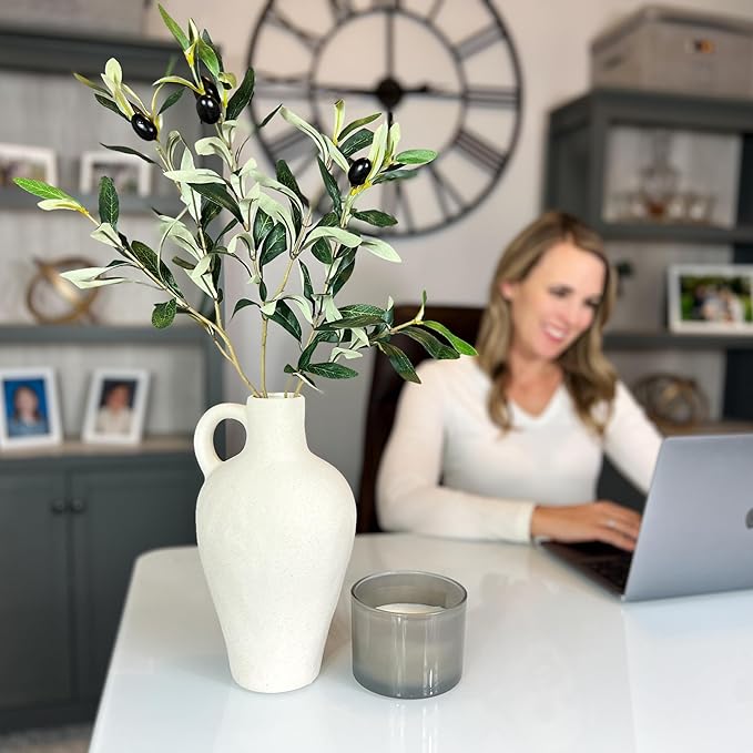 - QUALITY: Our customized textured vases are made with quality and durable materials. The attached felt pads keep your surfaces protected. We’ve hand-selected quality faux olive branches that are both sturdy and long-lasting.