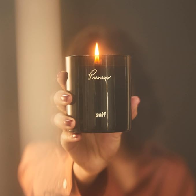 Prenup Luxury Scented Candle by Snif, Musky and Smooth Scent, 50+ Hours, 100% Cotton Fiber Wicks, Soy Wax Blend, Non-Toxic, Vegan, 8.5 oz