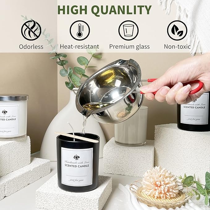 - 【High Quality & Easy Clean】These candle containers for making candles are heat-resistant, strong, not easily breakable, and reusable. Also the candle making jars are dishwasher safe and easy to clean by hand.