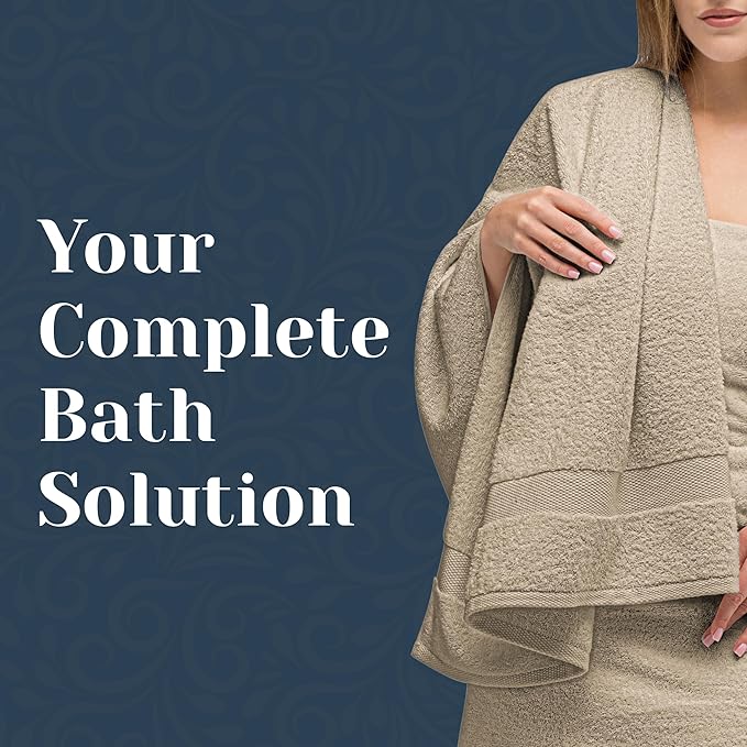 White Classic Luxury Bath Towel Set of 8 Pieces - 100% Turkish Cotton Highly Absorbent Towels for Bathroom, 2 Luxury Bath Towels 700GSM, 2 Hand Towels, 4 Washcloths, Taupe
