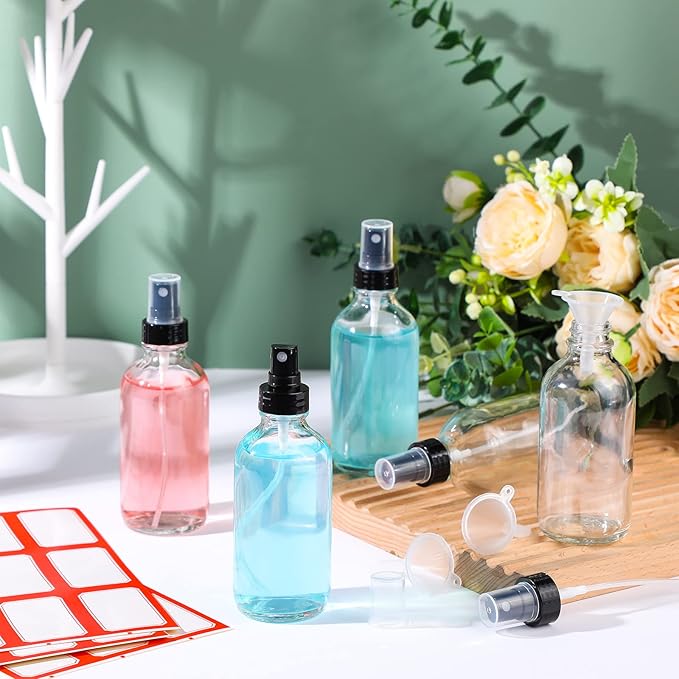 - Package Include: you will get 36 pieces of 120ml/ 4oz clear glass spray bottles, 6 sheets of labels (9 for each sheet) and 6 pieces of funnel, sufficient quantity and complete combination will meet your use and replacement needs; You can also share some with your family members, friends or neighbors