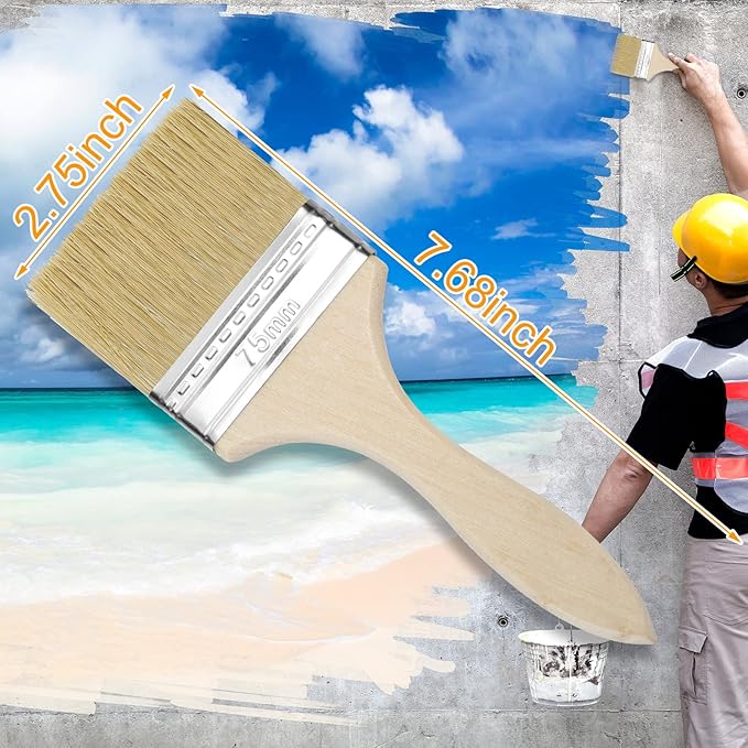 - Wide Compatibility: These bristle brushes for painting walls suit most latex and oil-based paints, stains, varnishes, acrylics, and plasters. They work on smooth walls, brick, and concrete, while still soft enough for light cleaning and dusting