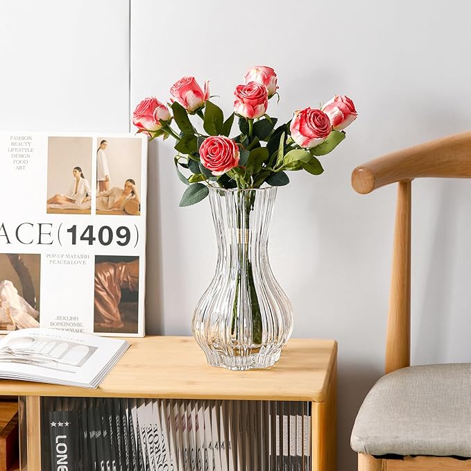 10" Decorative Modern Flower Vase for Floral Arrangements, Large Elegant Clear Glass Vase for Bouquet(Transparent) (Clear, 01)