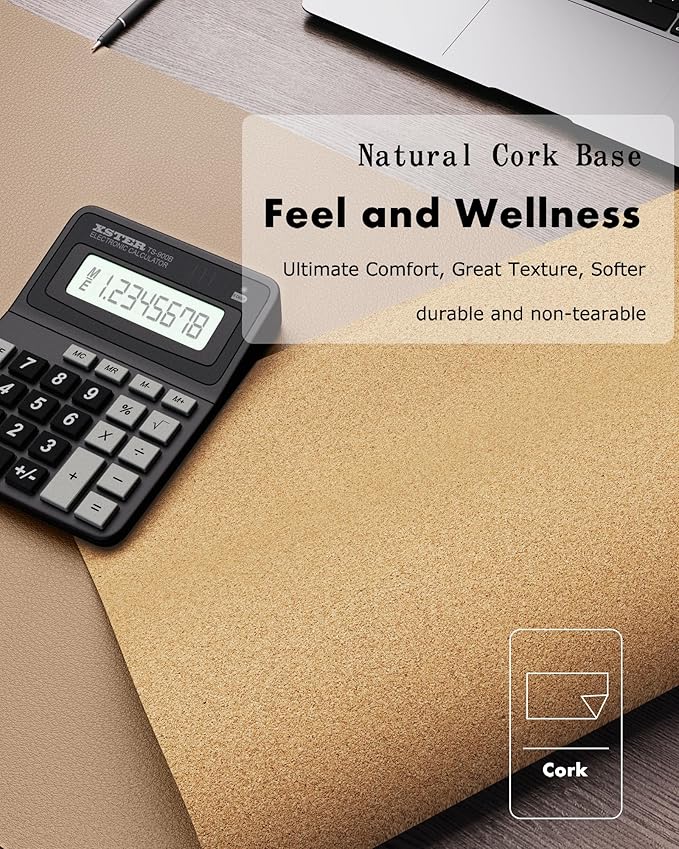 - Dual Side Design: The desk mat is made from high-grade cork & PU leather material, which is sweat-absorbing, durable and non-tearable.