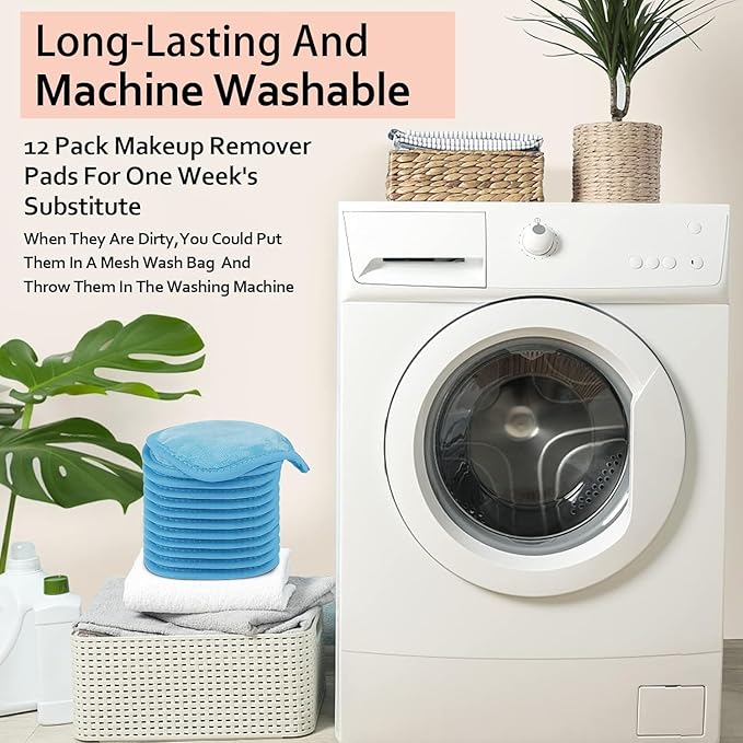 - Reusable and Washable: With 12 makeup cloths in a pack, you have enough for your daily needs. Once they become dirty, simply place them in a mesh wash bag and toss them in the washing machine. Each makeup remover pad is equivalent to 2000 makeup wipes, saving you money and reducing unnecessary waste from daily disposable makeup remover wipes