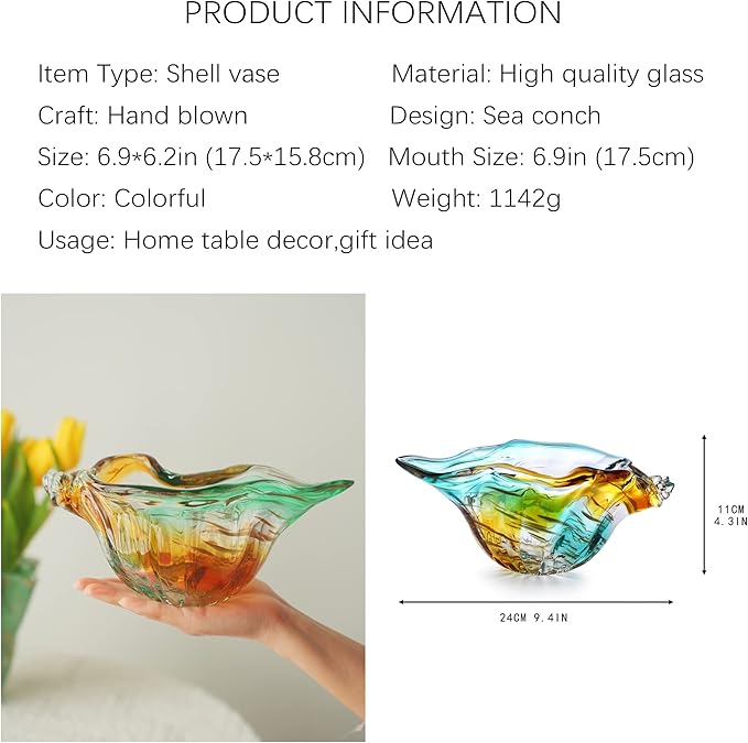 - Unique Figurine - As you know, it’s a handmade vase, every single conch is unique, no matter in colors or shapes will be a little bit different from the pictures, that called unique. By the way, the blown process may bring some bubbles which is normal, please understand.
