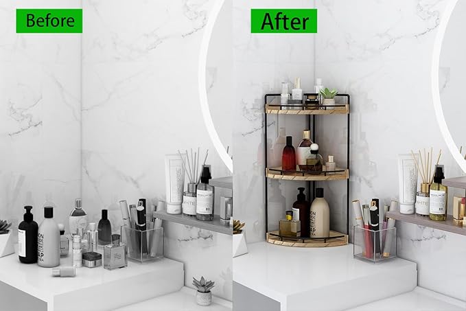 - Versatile 3 Tier Bathroom Shelf Organizer:Thanks to the size,this shelf has a variety of uses,and is not limited to just being a bathroom organizer.This would look great in a kitchen,bedroom,dresser