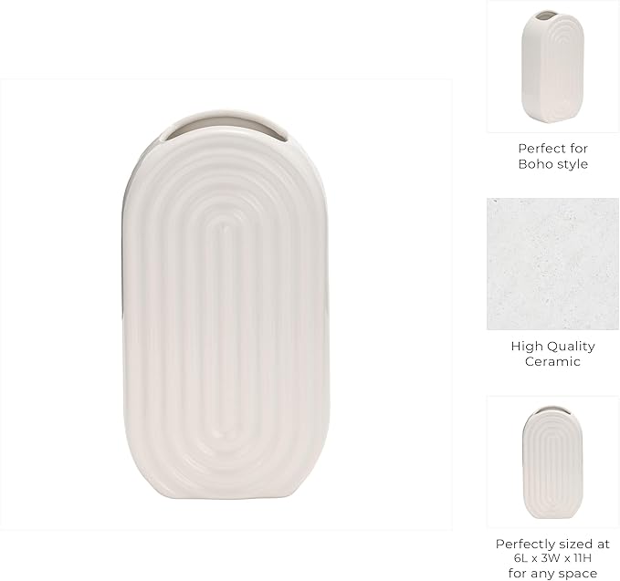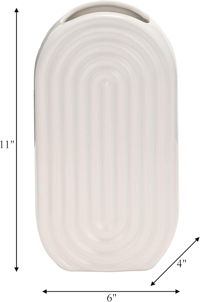 - ELEGANT BOHO DESIGN - Add a touch of modern boho charm to your home with this white ceramic stoneware vase, featuring a unique arched pattern that complements any decor style, from minimalist to farmhouse chic.
