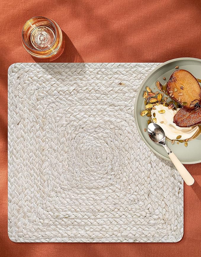 Hausattire Jute Braided Placemats 14x14 Inches Set of 4 Reversible Handwoven Boho Vintage Placemats for Kitchen Dining Tables|BBQ's Thanksgiving Decor Weddings Indoor & Outdoor Parties|Off-White