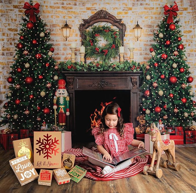 Hollyone 7 Pack Kraft Christmas Gift Boxes with Lids in Assorted Designs Christmas Gift Wrap Boxes Different Sizes Xmas Gift Boxes Shirt Box for Wrapping Xmas Holiday