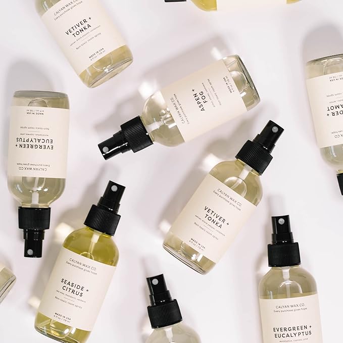 Calyan Wax Co. Non Toxic Room Spray, Evergreen + Eucalyptus Air Freshener, Non Aerosol Natural Room Mist, Aromatherapy Spray with Essential Oils, 4fl oz