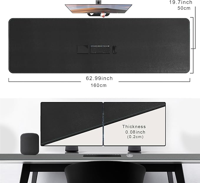 - EXTRA LARGE LEATHER DESK PAD: 63" x 16.9" (160cm x 50cm) large table pad, Its comfortable and smooth surface can be work as a mouse pad, desk mat, desk blotters and writing pad,which is large enough to accommodate your laptop, mouse and keyboard,coffee , tea and water glass, snacks,It is perfect for both office and home