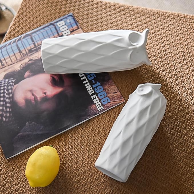 Owl Ceramic Vase Set of 2 for Living Room Bedroom 9.45'' and 8.27'' Modern White Fake Flower Plant Vases for Home Decor Office Table Shelf Fireplace Retro Rustic Farmhouse Vintage Classic Gift
