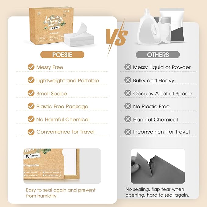 - Hassle-Free Cleaning - Our liquidfree detergent sheets are designed to make laundry day a breeze. No more measuring or pouring, just toss in the sheet and let it do the work. Bringing you the perfect laundry experience