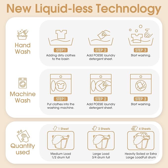 - Effortless Cleaning - Our liquidless detergent sheets are designed to make laundry day a breeze. No more measuring or pouring, just toss in the sheet and let it do the work. Bringing you the perfect laundry experience