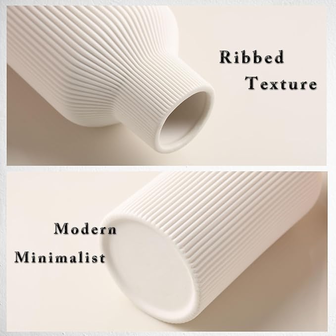- Modern Minimalist Design:Minimalist ceramic flower vases with ribbed texture and matte white color,Elegant and Simplest,great choice for modern rustic farmhouse home decor clearance.