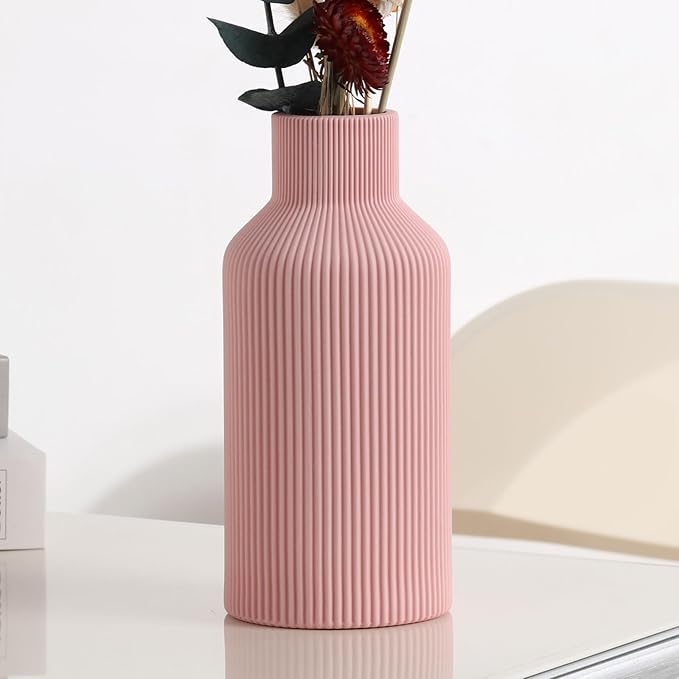- Modern Minimalist Design:Minimalist ceramic flower vases with ribbed texture and matte pink color,Elegant and Simplest,great choice for modern rustic farmhouse home decor clearance.
