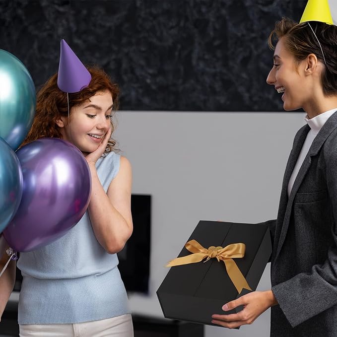 - 🎁【Widely Applicable】: This black gift box with ribbon can create a romantic ambiance and good texture is suitable for wrapping Christmas, Baby Showers, Weddings Day, Bridesmaid Gift,School Season,Father's day,Valentine's Day,New Year,Best Man's Day, Easter, Mother's Day, Birthday, Anniversary, Graduation, Housewarming, and other special gifts.