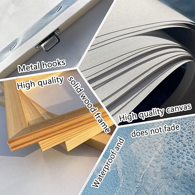 - Abstract wall art: The canvas and wooden frame are already assembled, and there are hooks in the package, so you just need to choose the right position to install them.