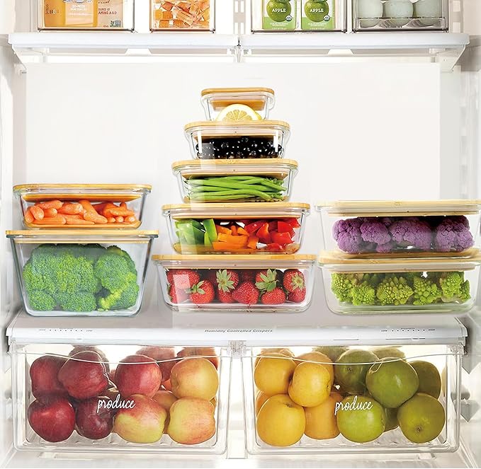 - ✅ ALL-IN-ONE USE: Simply use our glass container for meal prep, our 5 different sizes give you generous storage space for all needs, straight from the food prep to the oven cook. Our borosilicate glass is oven safe up to extremely high temperature 600F degree, server the delicious meal for lunch or dinner after cooking then storage the leftover in the container with airtight bamboo lids in the fridge. You can also use as a lunch box and to warm in microwave or oven for the next day.