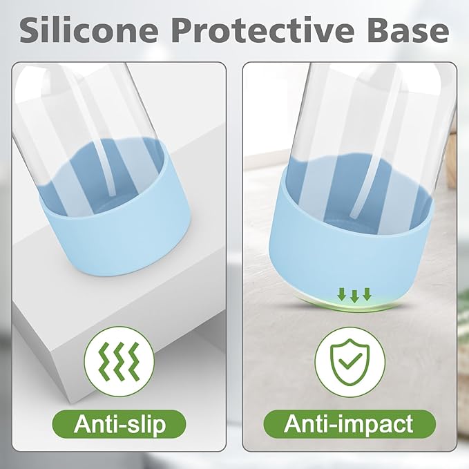 - Silicone Sleeve Protection: The bottom of the glass spray bottle is protected by an added silicone sleeve. The soft silicone is non-slip and slows the impact on the bottle, making glass bottle more sturdy.