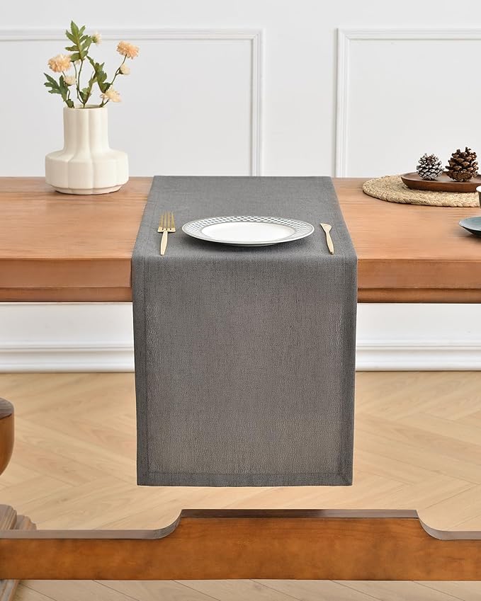 Wracra Linen Style Table Runner, Rustic Farmhouse Charcoal Grey Table Runners 108 Inches Long, Handcrafted Table Runner for Fall, Winter - Everyday Use and Machine Washable
