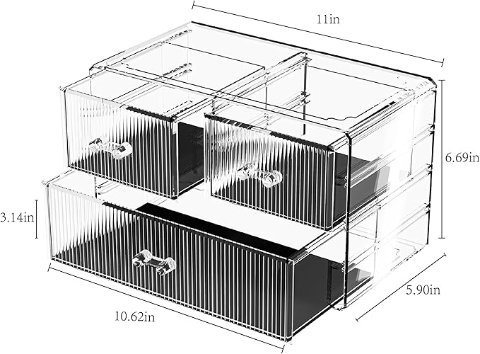 - The makeup organizer for vanity is also stackable, allowing you to easily add additional organizers as needed to create a customized storage solution. It is also perfect for use in the office, bedroom, or anywhere else you need to keep your items organized and easily accessible.