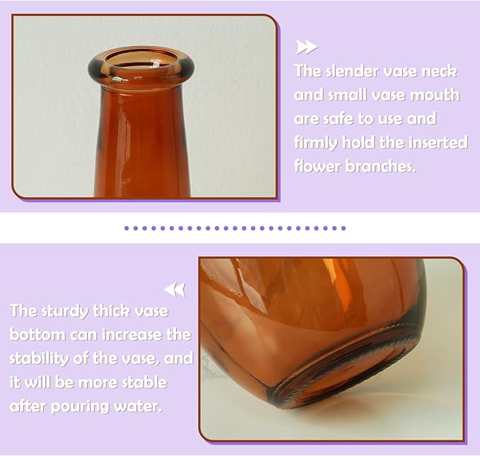- PREMIUM MATERIAL: This vase is made of high quality thick glass. The bottle has smooth lines and fine craftsmanship. The bottom of the bottle is thick and sturdy to prevent tipping.