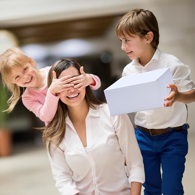 - Easy to Assemble: These white gift boxes with lids have a foldable design for easy storage, transportation, and saving space, tear off the white triangle sticker to easily assemble and glue the box.