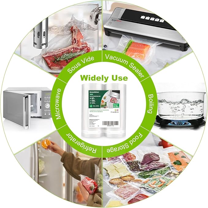 - Widely Use: Bonsenkitchen vacuum sealer bags are not just for packing varity of food, also suitable for fridge, freezer storage, boiling, sous vide cooking, microwave and so on.