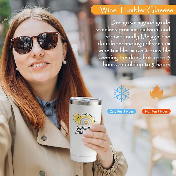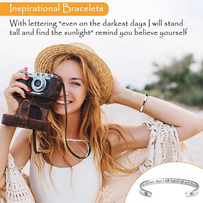 - [An Unforgettable Unboxing]:This womens gifts for is an exclusive! 39 x59 inches sunflower blanket with inspiring text-“SOMETIMES YOU FORGET THAT YOU'RE AWESOME SO THIS IS YOUR REMINDER” the 20 oz insulated stainless steel tumbler with the funny quote "SENDING YOU SUNSHINE RAINBOWS"; soft fuzzy socks, the inside of the inspirational bracelet is stamped with secret message "Even on the darkest days I will stand tall and find the sunlight" remind you believe yourself