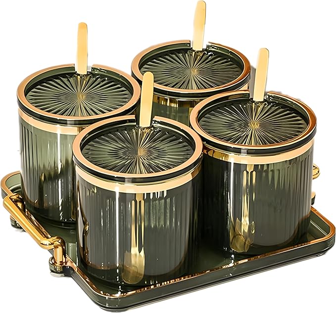 - ▲▲【Material】: Transparent thickened acrylic condiment container, made of PP plastic, equipped with 4 metal spoons and a practical tray with a handle, sturdy and corrosion-resistant, it can be effectively stored while decorating home life, adding color