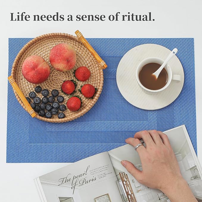 - Elegant and Practical Design: With a luxurious vinyl woven texture, precision cutting, and heat-trimmed edges, our double-sided placemats offer a sophisticated and practical solution. They provide a non-slip surface, resist fading, and are easy to clean, elevating your dining experience.