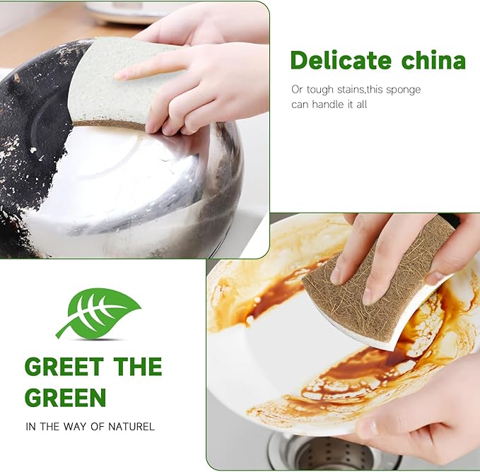 - Natural Cleaning Power - Our natural dish sponge can last long without being stinky! Our sponges kitchen unlike its plastic counterpart, it has porous structure helps it dry up quickly, lessening the chances for illness-causing compounds to breed.