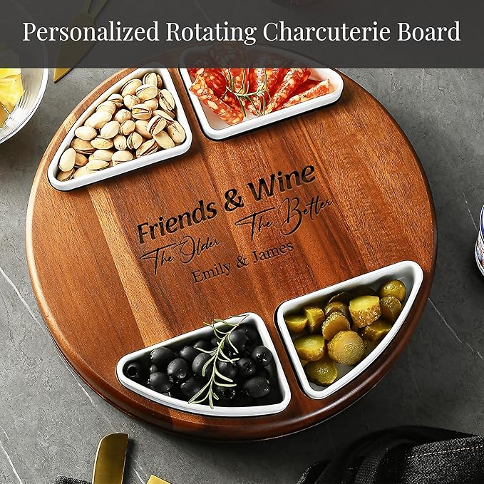 - Elevate Your Entertaining Experience: This Shanik Lazy Susan charcuterie board, crafted from premium Acacia wood, acts as the perfect centerpiece for any gathering, providing an elegant and functional platform to serve an array of cheeses, meats, and more. Immerse friends and family in a world of flavors with easy access and effortless spin, making hosting easy and luxurious.