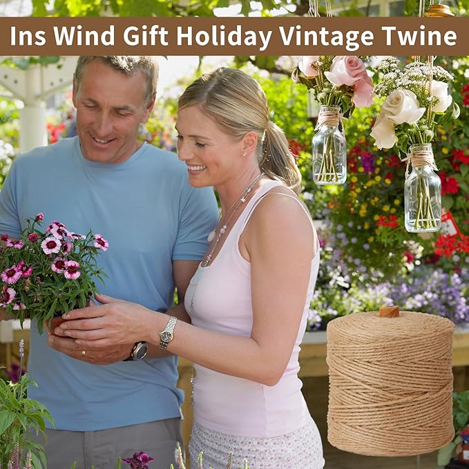 - ♥Φ 3mm 328ft Durable Jute Twine: Made of natural durable, eco-friendly jute fibers from the jute plant, making it biodegradable, renewable and environmentally friendly, a muted tone can help maintain the natural appearance of jute, and it is a very strong and adaptable material that lends itself to a variety of uses. 3mm jute rope that contains four strands is known for its high tensile strength and durability, making it ideal for heavy-duty applications like shipping, packaging.