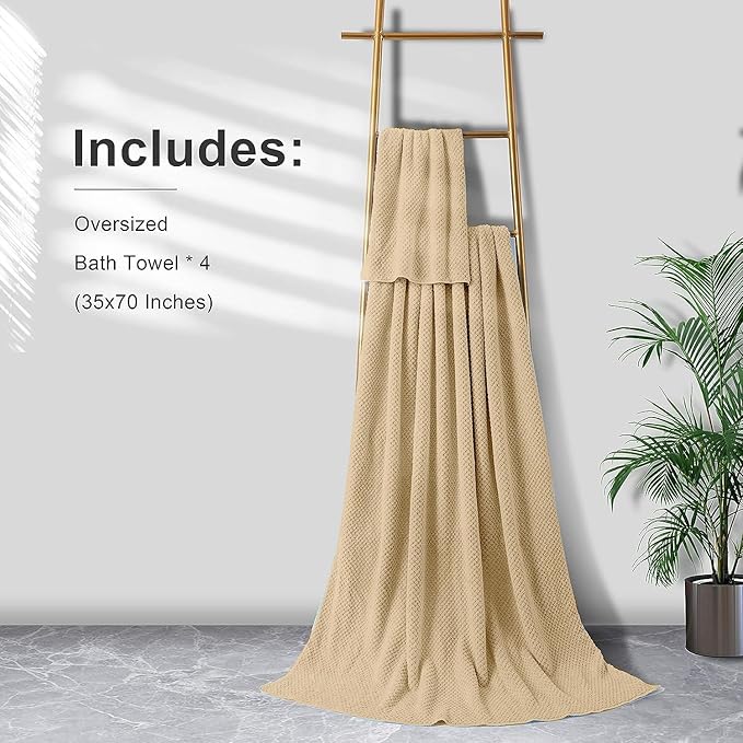 Extra Large Bath Towel Sheet Set 35x70 Inches - Oversized Bath Towels Set,Jumbo Large Microfiber - Quick Dry,Lightweight,Super Soft,Highly Absorbent Towel Set for Bathroom,Hotel,SPA,Pack of 4(Camel)