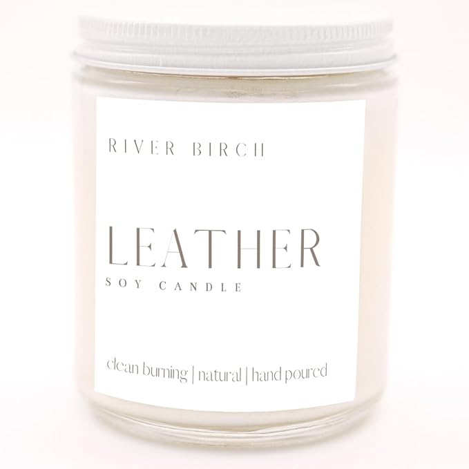 River Birch Candles Leather Scented Candle | Premium, All-Natural, Non-Toxic, Soy Candles | 8.5oz 40 Hr Burn Time | Cozy Relaxing Gifts for Home