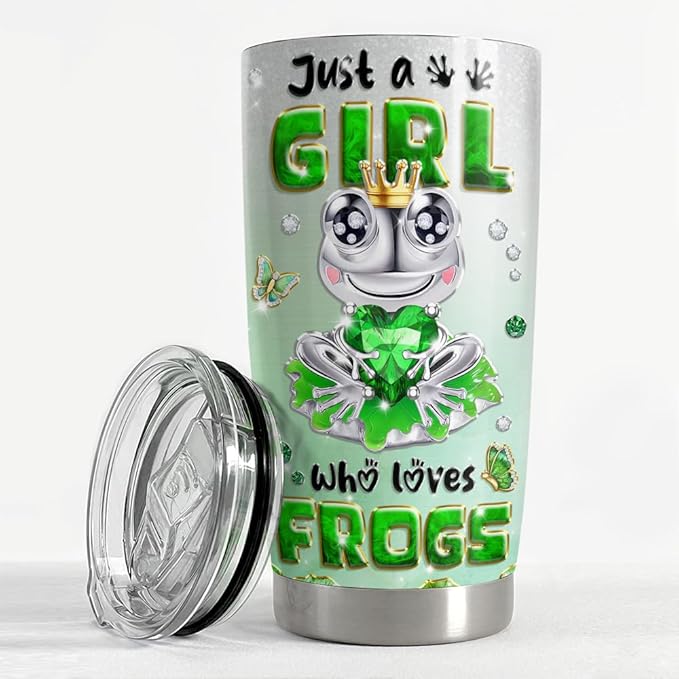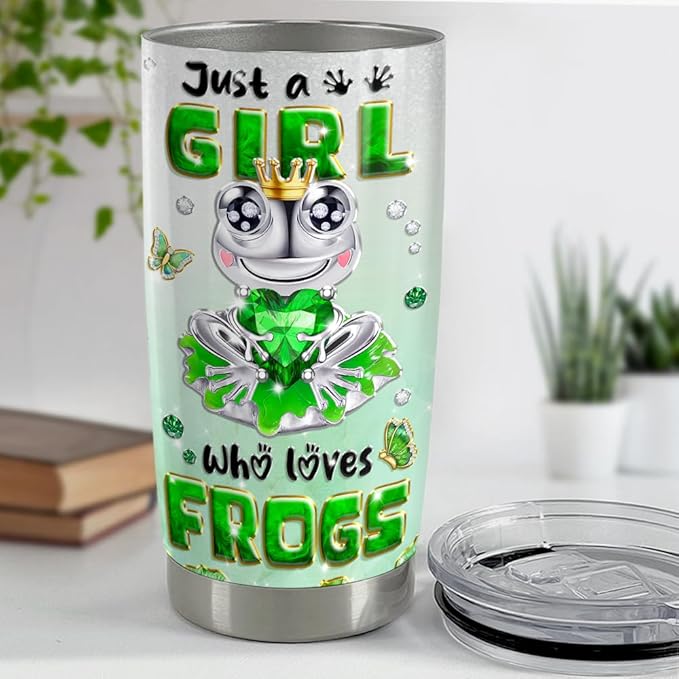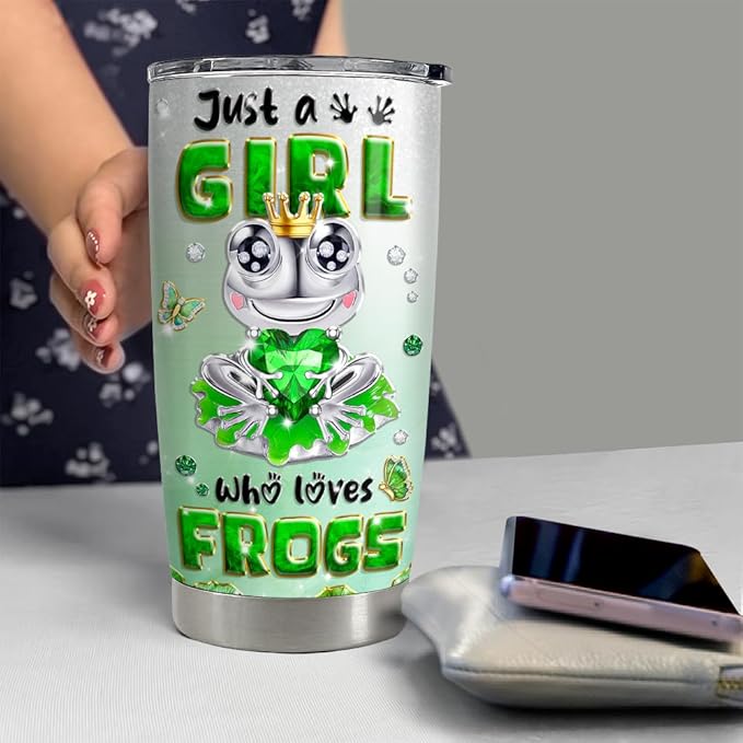 SANDJEST Frog Tumbler 20oz Girl Who Loves Frogs Cup Stainless Steel Insulated Tumblers Coffee Travel Mug for Girls Teen Gift for Birthday Christmas