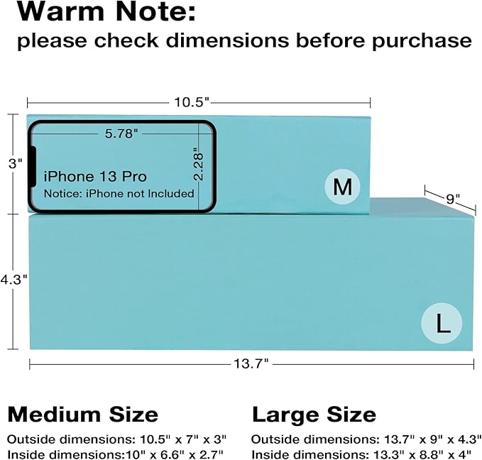 - Valuable 5 Pack Blue Gift Boxes - boxes are shipped flat; medium blue collapsible gift box with magnetic closure, assembled box outside dimensions 10.5x7x3 inch, inside dimension 10 x 6.6 x 2.8 inch.