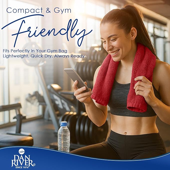 DAN RIVER 6-Pack Premium Hand Towels (16x28 Inches) - 100% Cotton, Ultra Soft, Lightweight, Highly Absorbent Towels for Bathroom, Spa, Gym, Salon, Hotel, and Travel - 550 GSM โ Red