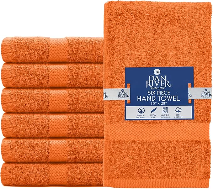 DAN RIVER 6-Pack Premium Hand Towels (16x28 Inches) - 100% Cotton, Ultra Soft, Lightweight, Highly Absorbent Towels for Bathroom, Spa, Gym, Salon, Hotel, and Travel - 550 GSM โ Orange