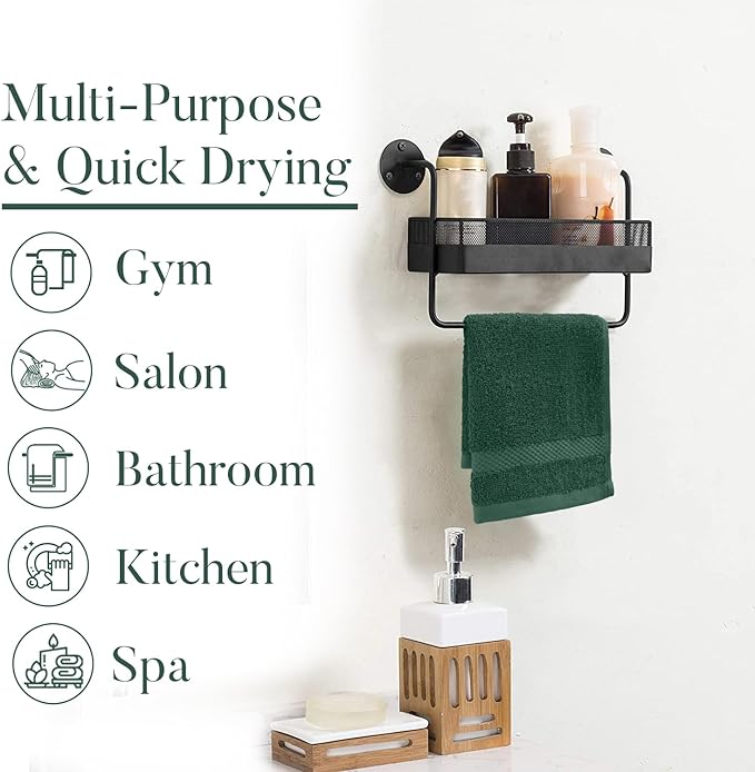 DAN RIVER 12-Pack Premium 100% Cotton Huntergreen Face Towels – Reusable Face Towel Set, Soft & Absorbent Cleaning Rags for Bathroom & Body – Hand and Face Towels, 550 GSM (12x12 in)